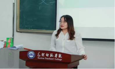 文学院2021届学生会主席团代表杜雪发言,她首先对上一学年学院领导老师对学生会工作的指导与支持表示感谢,也对上一届全体学生工作人员的认真付出表示肯定。同时希望新一届学生工作人员能够明确定位,服务同学,严于律己,以身作则。
