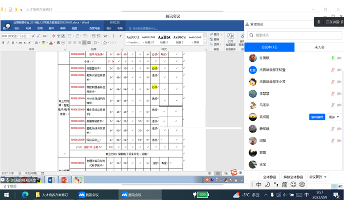 校企双方讨论了应用物理专业建设及2023版人才培养方案制定工作。尚涛老师从专业人才培养目标、课程设置及就业等方面介绍了应用物理专业发展现状及存在的问题,并介绍区内各高校应用物理专业设置和课程建设情况,对人才培养方案的制定提出了具体的意见。企业课程总监刘涛对企业现状,应用物理企业课程结构及企业发展优势方向做了介绍,提出了支持人才培养方案制定的企业课程方向。之后应用物理教师对人才培养方案的制定展开了讨论。王芳副院长最后指出,校企合作是应用物理专业建设的特色,在2023年人才培养方案的制定过程中,双方要以培养高质量人才为目标,发挥各自优势、明确培养学生的合作方向、全方位深化各项合作,不断推进应用物理专业稳步健康发展。