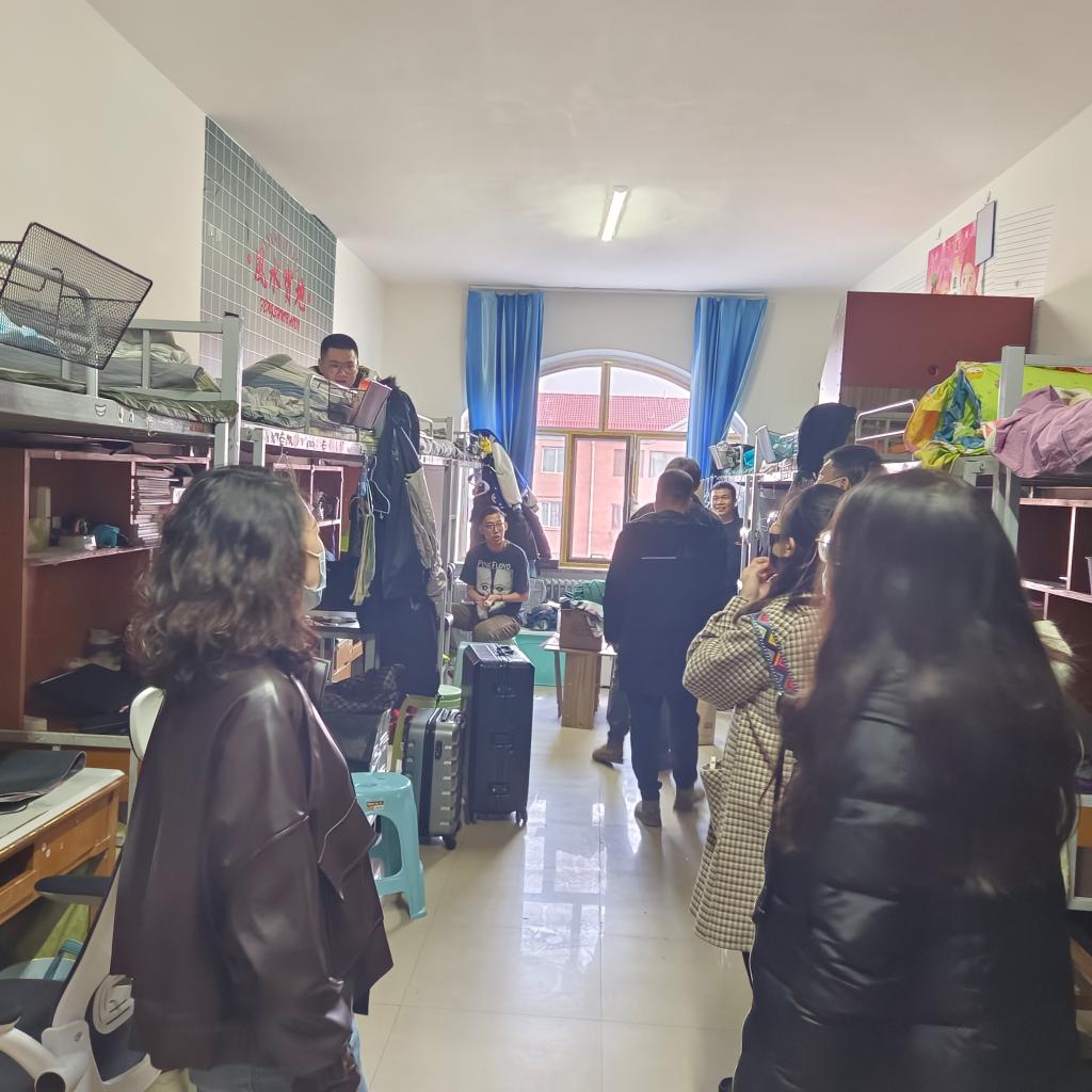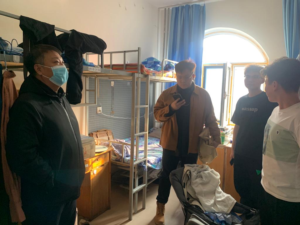 为及时了解学生返校情况和思想动态,在2月24日下午和2月26日下午,党总支书记赵玉强与辅导员、班主任走访学生宿舍,实地了解学生在宿舍的学习、生活、心理等情况,为学生送去关心和问候。走访过程中,大家首先详细了解学生的身体健康状况、新学期愿望和需求,与同学们进行深入亲切的交流,其中尤为注重关心同学们在生活中遇到的问题,并耐心地解答给予帮助。同学们也积极回应,就日常生活、未来规划与老师们展开交流讨论。