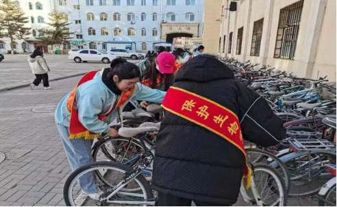 摆放校园单车志愿服务活动。生物科学与技术学院学生志愿者于3月3日开展“摆放校园单车,践行雷锋精神”活动。志愿者们以身作则,认真清洁校园里的公共自行车,充分发扬“从小事做起”的雷锋精神。对“为人民服务”有了更感性的认识,同时呼吁同学们牢记服务人民、助人为乐的奉献精神,做到干一行爱一行、专一行精一行,用实际行动来诠释雷锋精神,践行文明风尚。