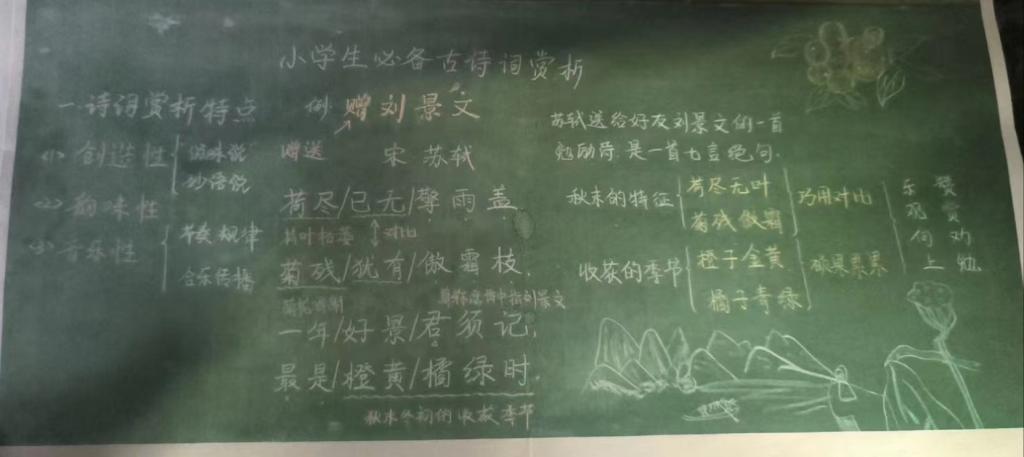 本次活动共有63名同学报名参加,同学们设计的板书书写规范、层次分明、重点突出、语言精练、布局合理。语文的板书字迹工整有力,一笔一画,一字一词;数学的板书条理清晰,配上图案去讲解数学公式,图文并茂,直观形象;心理专业的板书更显有趣,可爱的图案配上温馨的文字,内容贴近学生。整体来看,有的板书字迹优美,知识体系完整,版面整齐,让人赏心悦目;有的通过思维导图串联知识要点,帮助学生理清思路。活动结束后,有同学表示:“这一次的板书设计活动的准备中,不仅再一次温习了教材内容,在较短的时间内快速把握重难点,同时也感受到教师书写板书不只是知识的搬运和抄写,更是一种知识的内化和再生产,通过教师的加工,使知识更加简单明了、通俗易懂。”