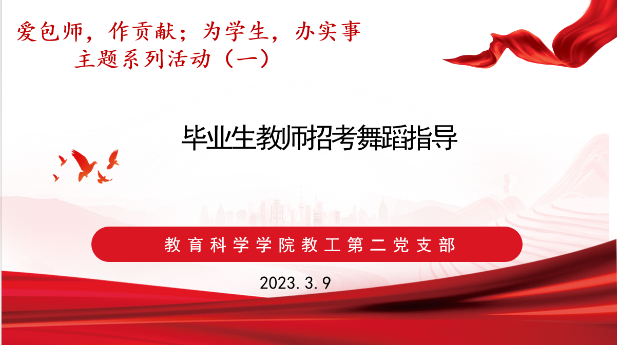 此次舞蹈指导充分体现了教工二支部党员教师为学生办实事的决心和服务意识,增强了学生备考的信心,拉进了师生间的距离。同学们纷纷表示,带着老师的殷殷嘱托,将以更好的状态迎接即将到来的教师招考。