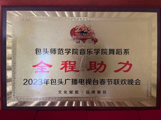 近期,包头市广播电视台将“全程助力2023年包头广播电视台春节联欢晚会”的牌匾送与音乐学院舞蹈系。