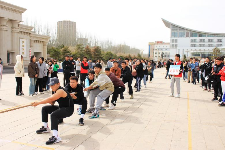 为丰富学校课余生活,增强学生体魄,培养学生团结协作、勇于拼搏的优秀品质,我校于4月13日在博学楼南广场开展了校园拔河比赛。文学院积极参与并取得了优异的成绩。