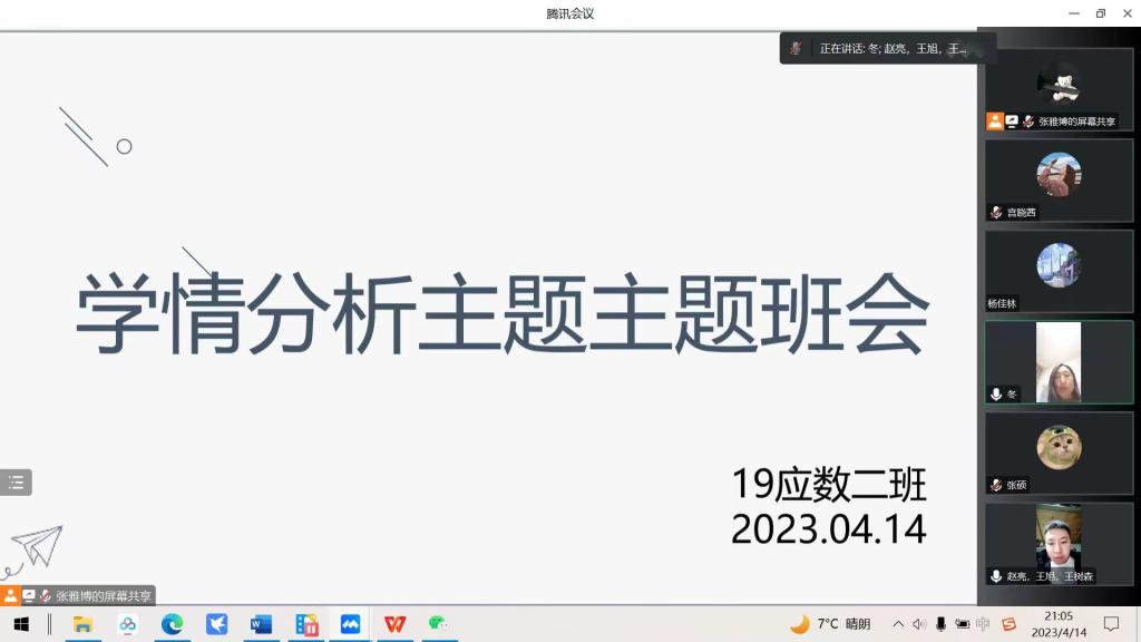 为深度剖析班级存在的问题,进一步增强学生学习的有效性和针对性,数学科学学院各班级于4月14日-4月21日组织开展了2022-2023学年第一学期班情学情分析主题班会。学院各班级班主任、辅导员通过开展主题班会形式,与学生共同讨论学习和班级发展的目标方向。