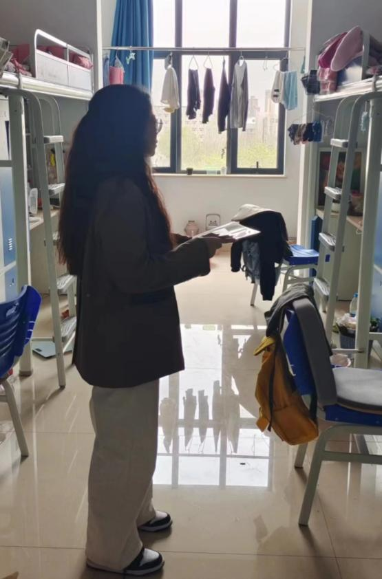 检查走访过程中,辅导员老师和宿管会学生干部仔细排查每一个宿舍,针对插座不规范使用、可燃杂物堆积、使用违规电器等可能存在的安全隐患进行了突击检查。李书记叮嘱同学们要增强安全防范意识,注意防火防盗,关好宿舍门窗,禁止私拉乱接电线,禁止使用大功率电器,教育并提醒同学们养成良好的生活和作息习惯,注意开窗通风,要自觉维护宿舍安全,保持室内清洁,共同维护学院的安全稳定。通过检查发现,男女宿舍卫生整体情况良好,尤其是2022级新生宿舍,室内环境干净整洁。对于个别宿舍出现的卫生问题,如宿舍物品摆放杂乱、垃圾不及时清理、通风状况较差等问题,辅导员老师提出批评并指明整改措施、亲自指导,督促同学们要保持寝室整洁、预防传染病。