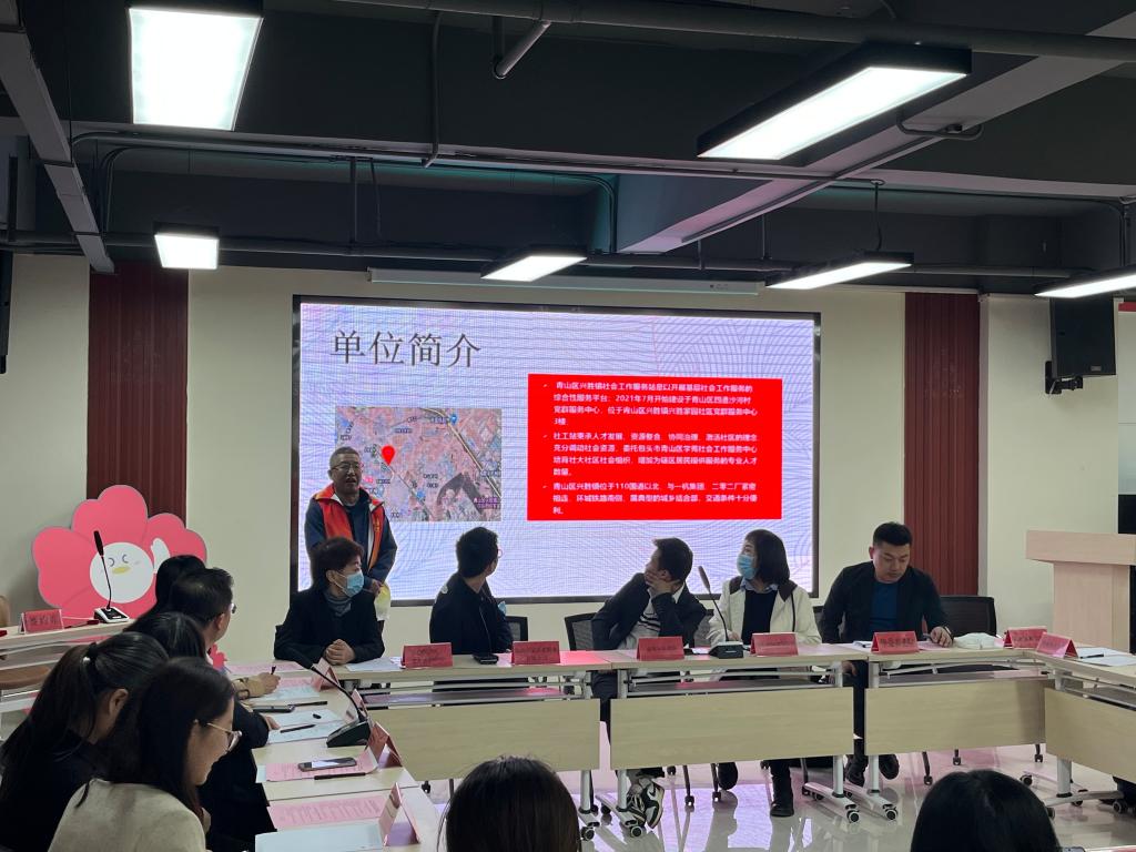 会前,政法学院优秀校友高峰为在场师生详细讲解了青山区五社联动治理创新示范基地的发展概况、主要项目、运作思路和实现五社联动机制的重要意义。