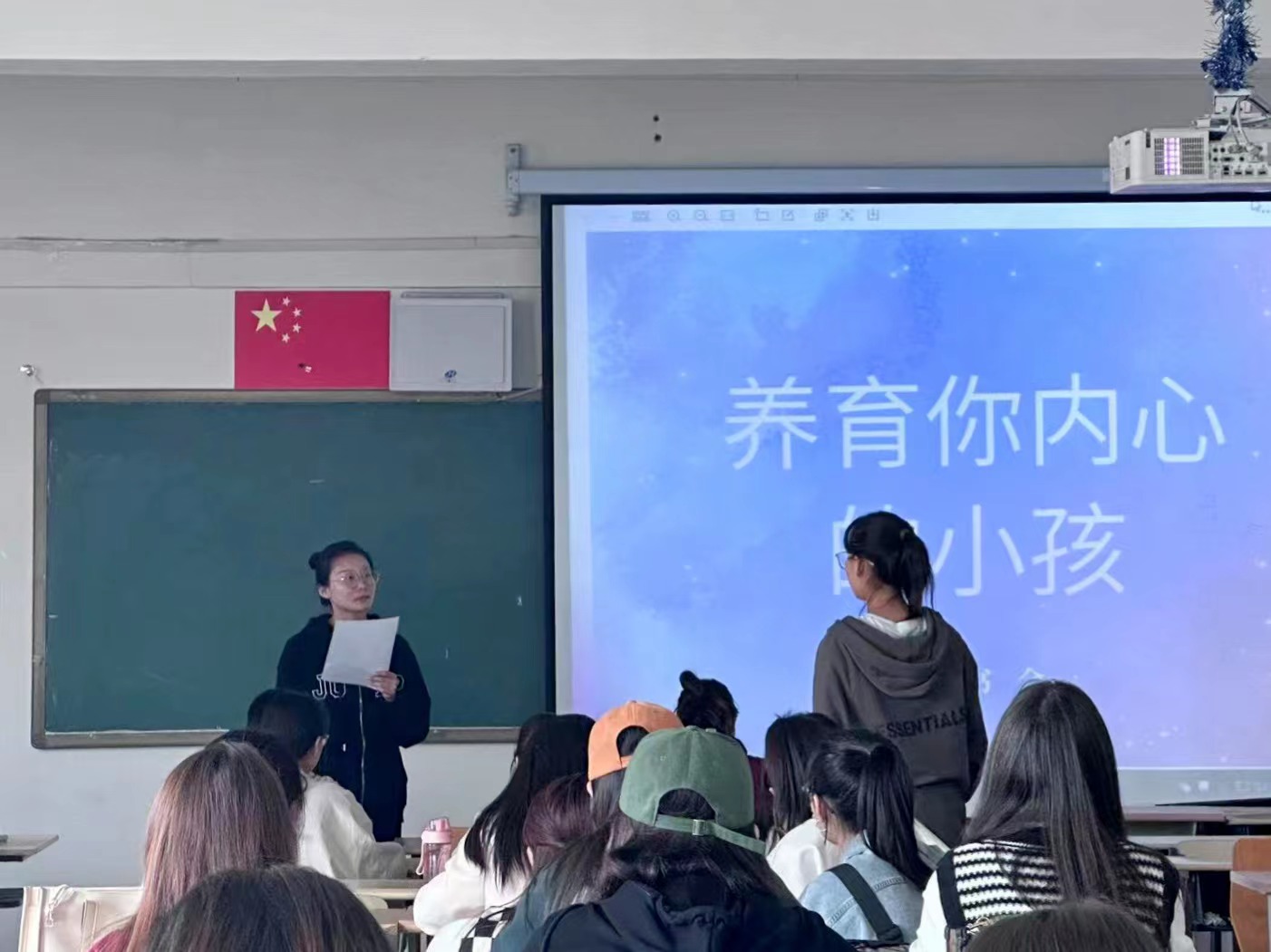 本期读书会阅读的书籍是《养育你内心的小孩》,这本书从安全感、自由感、价值感、意义感和亲密感五个角度切入,教会读者心理学的思维模式,让大脑的思维方式变得轻松、灵活和开阔。领读人孙识杰同学介绍这本书的内容并分享了自己读后感受。她提出,当今大学生面临非同以往的就业压力和学业压力,大家应学会透过情绪了解自己的真实需求,不断提升自信心。崔金巧同学表示提高自我价值感的关键在于养育自己,回到内在,给予自己积极正向的反馈。宗喜凤同学带领大家做“情绪咖啡屋”角色扮演游戏,通过角色扮演模拟现实情境,使同学们更好地了解自己和他人的情绪,找到应对方法,改善情绪和心理状况。