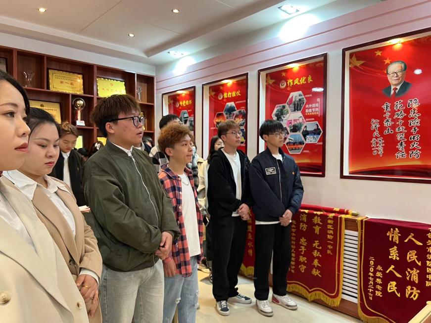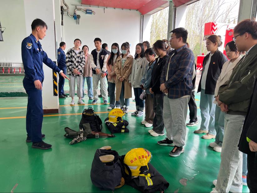 参观结束后,学生与消防支队青年消防员一起开展联合党团交流活动,学生代表现场进行了党的二十大精神及五四精神主题宣讲。