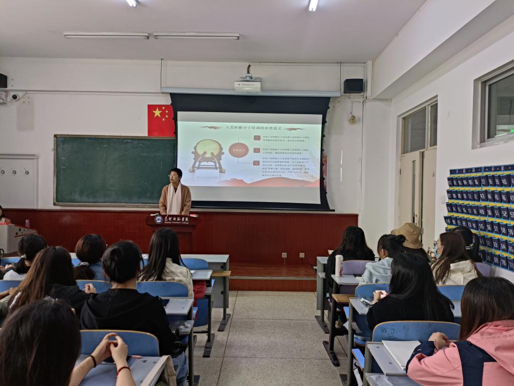 为了进一步加强入党积极分子全面了解和掌握党的基本知识,端正入党动机,坚定加入中国共产党的信念,明确肩负的责任和使命,教育科学学院党总支于4月20日在博东203举办了第46期积极分子培训班开班仪式。