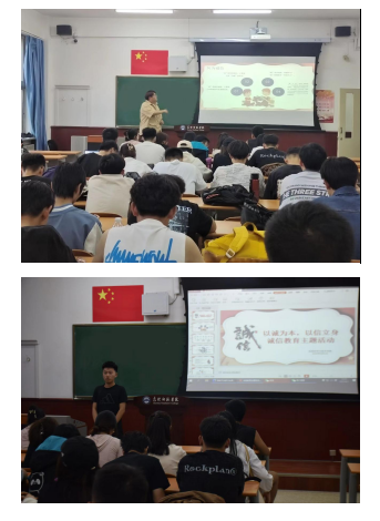 21级外包班班长李航同学从生活诚信、学术诚信、贷款诚信三个方面进行了交流分享,他强调个人诚信的重要性,并结合范例告诫同学们面对各种各样的利益和诱惑,要坚守做人做事的道德底线,真诚做人、守信做事;倡导在学术活动中坚持诚实、公平,主要体现在考试、作业、实践报告等方面杜绝剽窃和抄袭等行为;重视诚信贷款,认真履行借款合同、恪守诚信、实事求是。
