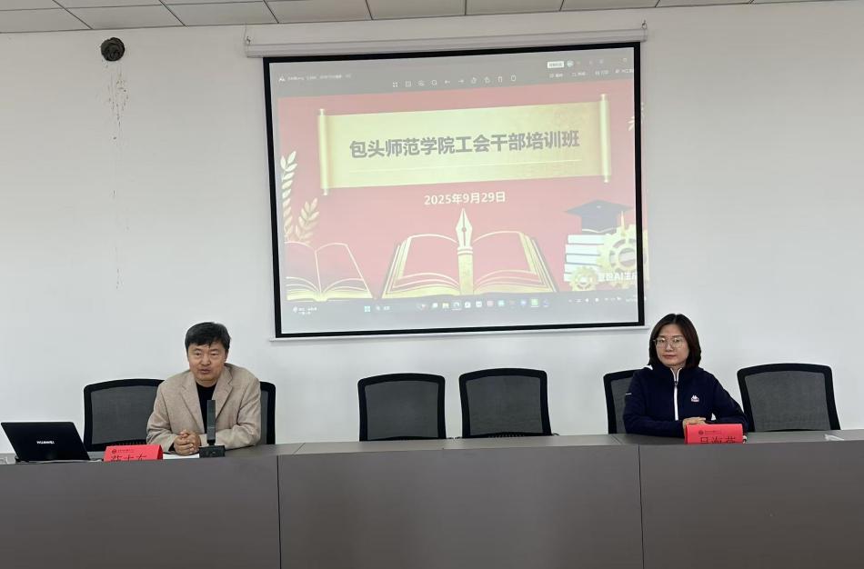 2025年9月29日,包头师范学院工会在固阳怀朔镇研学基地举办工会干部培训班。包括校工会委员会委员、基层工会干部代表及各专门委员会委员,共30多名工会干部参训。培训旨在提升干部专业素养,推动工会工作高质量发展,培训内容包括学习习近平总书记在庆祝中华全国总工会成立100周年暨全国劳动模范和先进工作者表彰大会上的重要讲话,铸牢中华民族共同体意识教育,工会干部业务及经费管理工作培训。