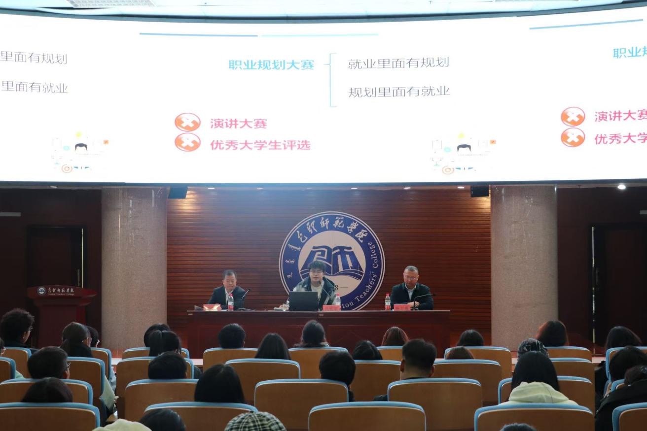 会上,郭宏升作了题为“全国大学生职业规划大赛赛事解读与备赛攻略”的专题讲座。他从“何为职业规划大赛”“为何参加比赛”“如何科学备赛”三个方面进行了系统讲解,全面解读了赛事宗旨、赛道设置、评审标准及备赛要点。他强调,本次大赛是教育部与省级人民政府联合主办的国家级重要赛事,规格高、影响大、参与面广,不仅有助于提升学生的职业生涯规划能力、表达能力与综合素质,也将为综合测评、评优评奖和就业择业提供有力支撑。