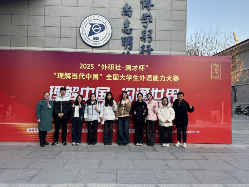 10月31日至11月2日,2025“外研社・国才杯”“理解当代中国”全国大学生外语能力大赛内蒙古自治区赛在呼和浩特市内蒙古工业大学新城校区隆重举办。外国语学院选派王坤、雷春阳两位教师带队,组织学院学生参赛。同学们最终凭借扎实的语言功底、出色的综合素养及稳定的现场发挥,在多个赛项中斩获佳绩,充分展现了我校外国语学院的教学改革成果及学生良好的国际传播素养和综合能力。