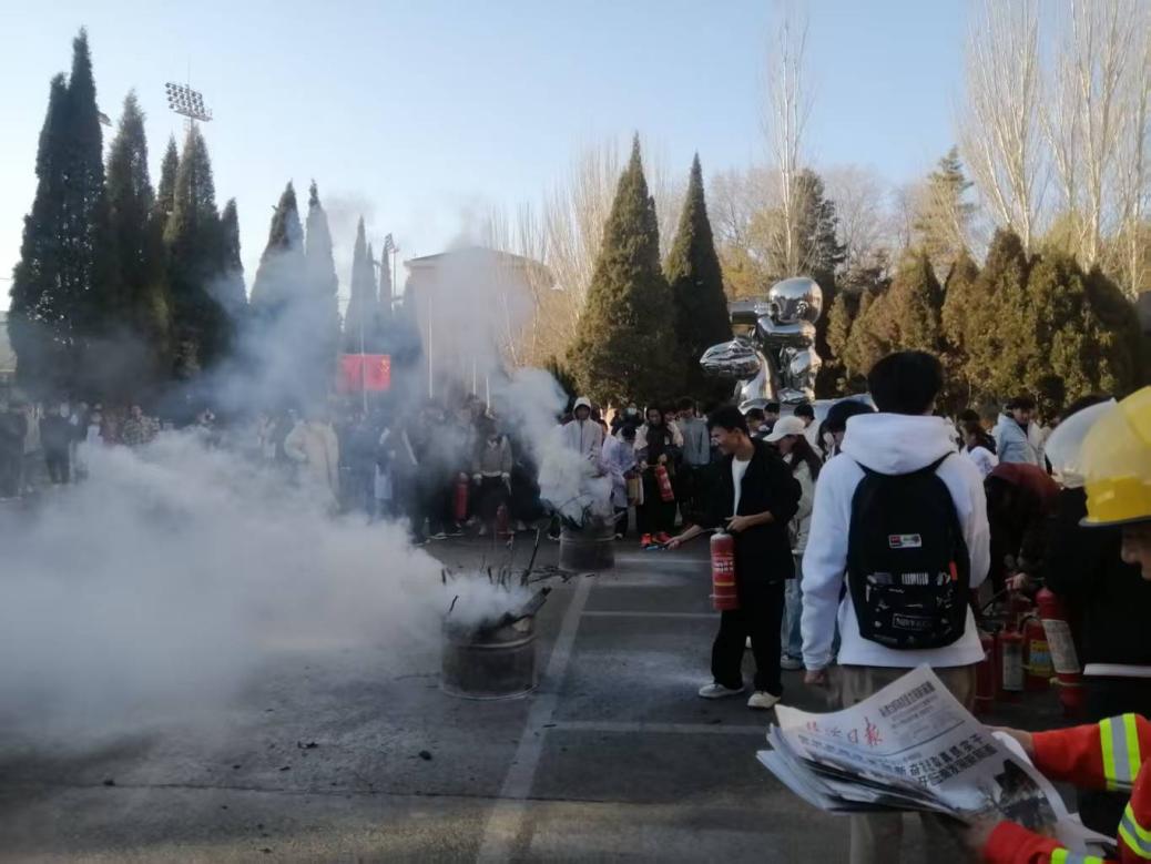 随后,安全保卫处消防科工作人员现场演示了灭火器的正确使用方法,讲解了火灾初期扑救的要点和注意事项,并邀请参演师生亲自操作演练,让大家在实践中掌握灭火技能。
