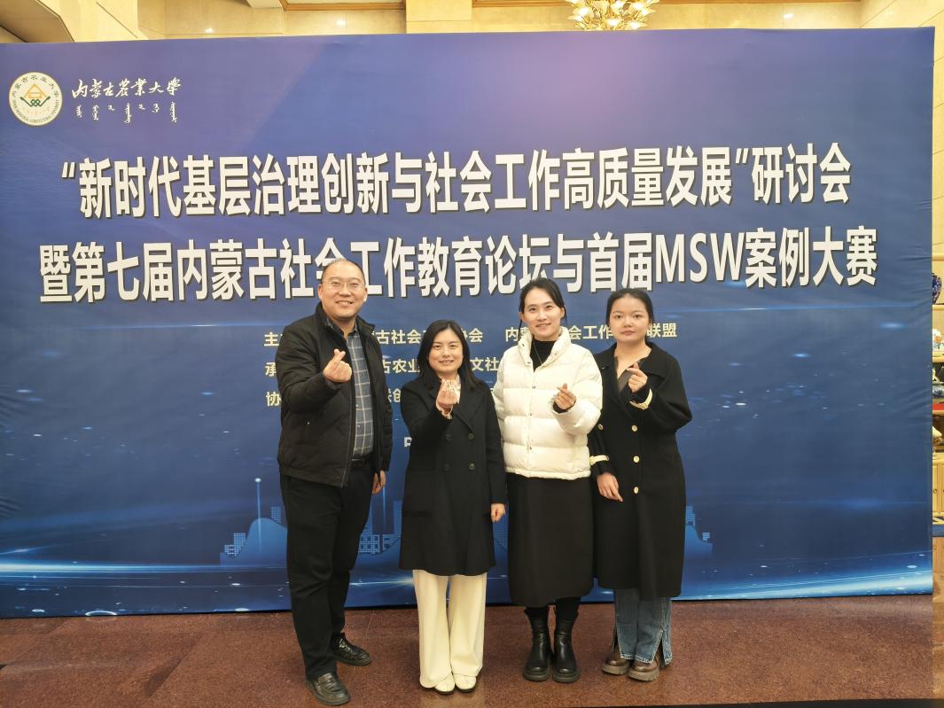 11月22日,由内蒙古社会工作协会、内蒙古社会工作高校联盟主办,内蒙古农业大学承办的“新时代基层治理创新与社会工作高质量发展研讨会暨第七届内蒙古社会工作教育论坛、首届MSW案例大赛”在呼和浩特举行。全区9所设有社会工作专业高校的近百名专家学者和学生齐聚青城,我校科技处副处长王拓涵、政治与法律学院魏成老师、社会工作系主任郭艳老师,24级MSW研究生胡新婧、23级本科生陈佳应邀参会。