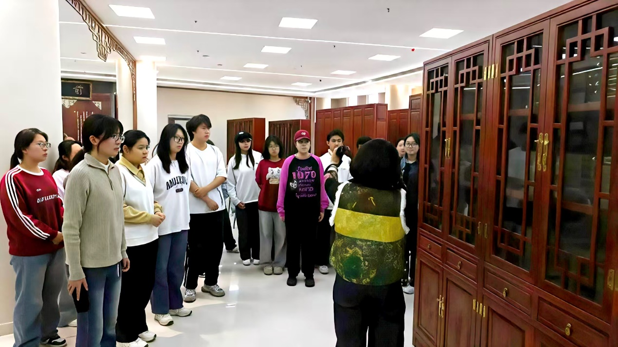 活动伊始,郝素珍老师带领同学们走进四库书房的典籍世界,详细介绍了书房内珍贵典籍的文献价值与文化内涵,让大家在书香中感受传统文化的深厚底蕴。随后的剪纸教学环节中,郝老师从基础技法入手,讲解裁剪角度、线条控制等要点,现场示范双喜字、团花的剪法,并重点指导马年生肖对马创作,教大家用简洁线条勾勒马匹灵动姿态,以对称构图传递吉祥寓意。