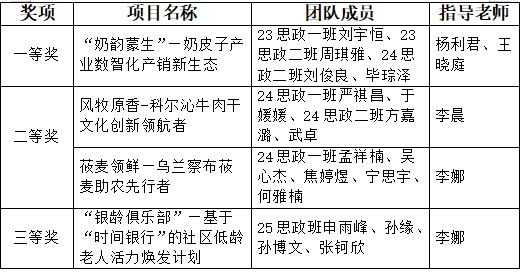 比赛现场,各参赛团队依次登台,围绕创新项目的立项背景、实践调研、发展方向、商业模式等方面展开精彩讲解,从“奶韵蒙生”奶皮子产品依托互联网创新发展到“牧香传薪”牛肉干古法制作传承创新。从“银龄俱乐部”焕发社区低龄老人活力到“莜麦领鲜”聚焦糖尿病患者和健身人群的需求。四支队伍的参赛项目兼具创新性与社会价值。评委们结合项目可行性、团队协作表现等维度进行专业点评与量化打分,现场问答环节思维碰撞激烈,充分展现了马院学子的创新思维与实践魄力。