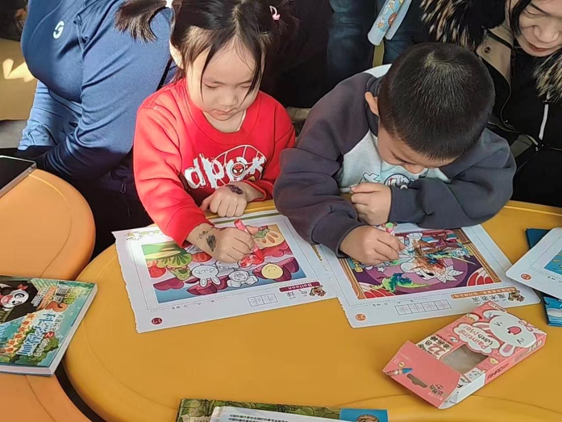 创意填涂,绘出五彩童心。 阅读不仅是视听的享受,更是动手的乐趣。在填涂环节,孩子们领到精美的填色卡,充分发挥天马行空的想象力,用斑斓色彩描绘心中的童话。专注的神情展现了独特的艺术天赋,一幅幅充满童趣的作品在他们手中诞生。