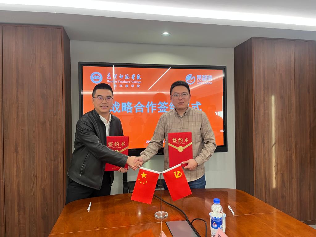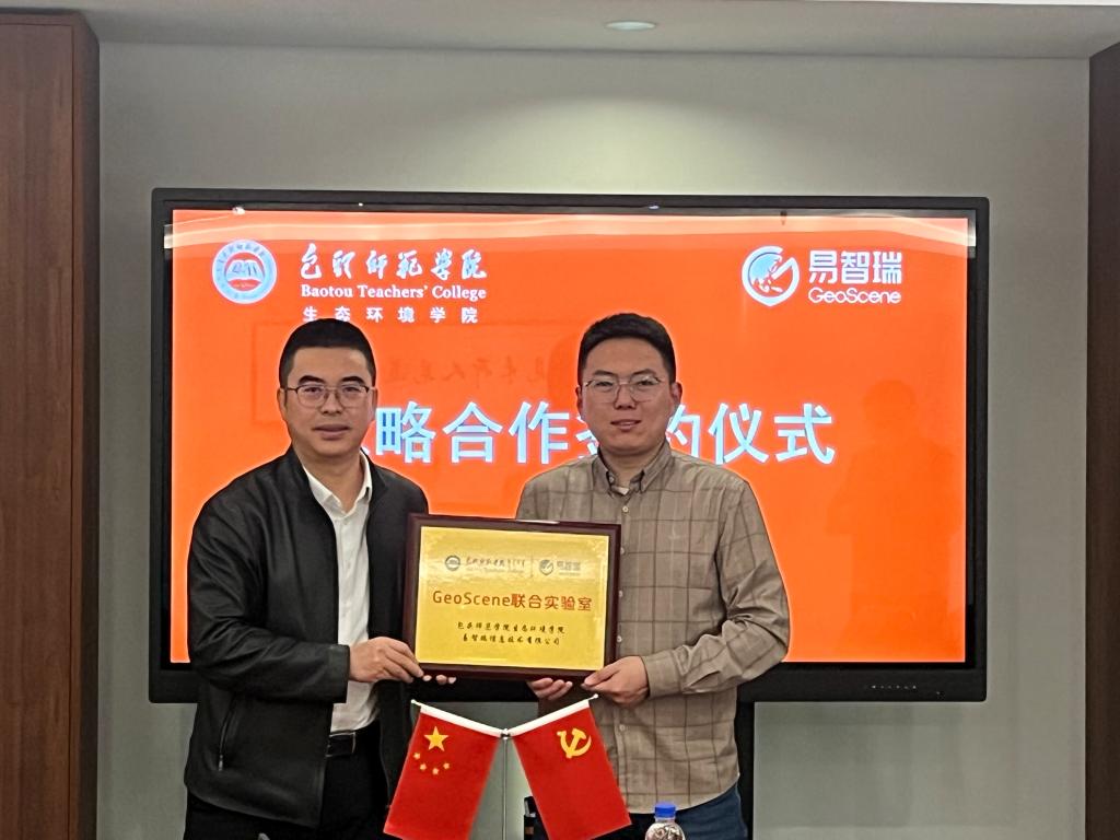 此外,双方还就未来深化科研合作、技术交流、平台共建等可能性交换了意见,初步探讨了联合开展课题研究、共享行业数据与技术资源的可行性,旨在构建长期、稳定、共赢的校企合作机制。高健代表学院与易智瑞进行战略合作签约,谢远飞高级副总裁为GeoScene联合实验室进行授牌。