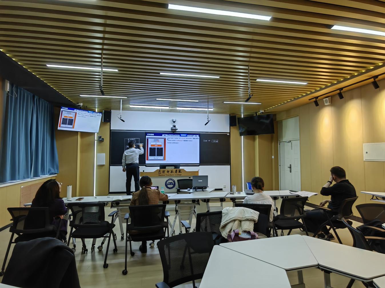 本次培训薛庆教授逐一听取了选手的20分钟教学展示,并进行了详细点评,重点指出了教学逻辑、人工智能赋能教学及课程思政的不足,并系统解读了比赛评分细则,着重说明了“以学生为中心”的教学设计理念与现代教育技术的融合。