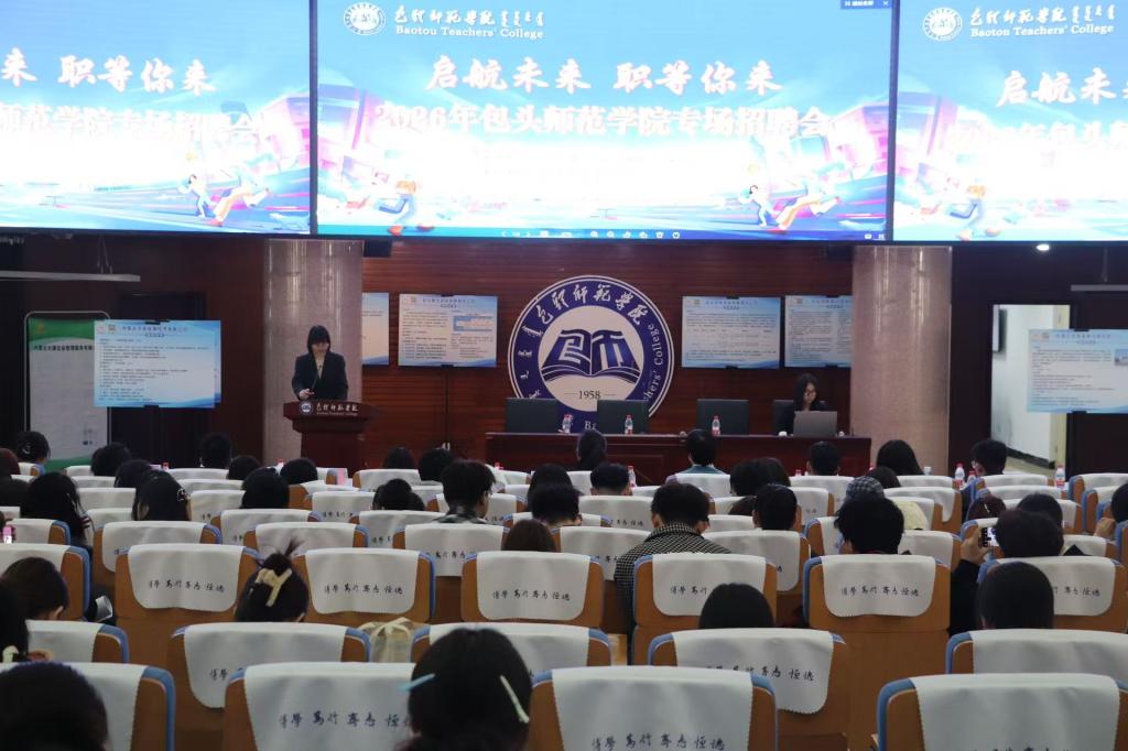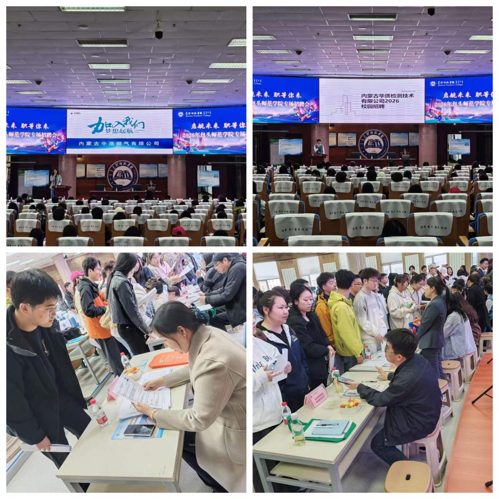 2026年3月31日下午,化学学院在博学楼学术报告厅举行了“启航未来,职等你来”能源化工专场招聘会。包头伊利乳业有限责任公司、内蒙古华质检测技术有限公司、包头希望铝业有限责任公司、包头市敕勒川高级中学、乌海市冀蒙高级中学等15家优质企业和民办学校,全校各专业近400名学生参加了活动。