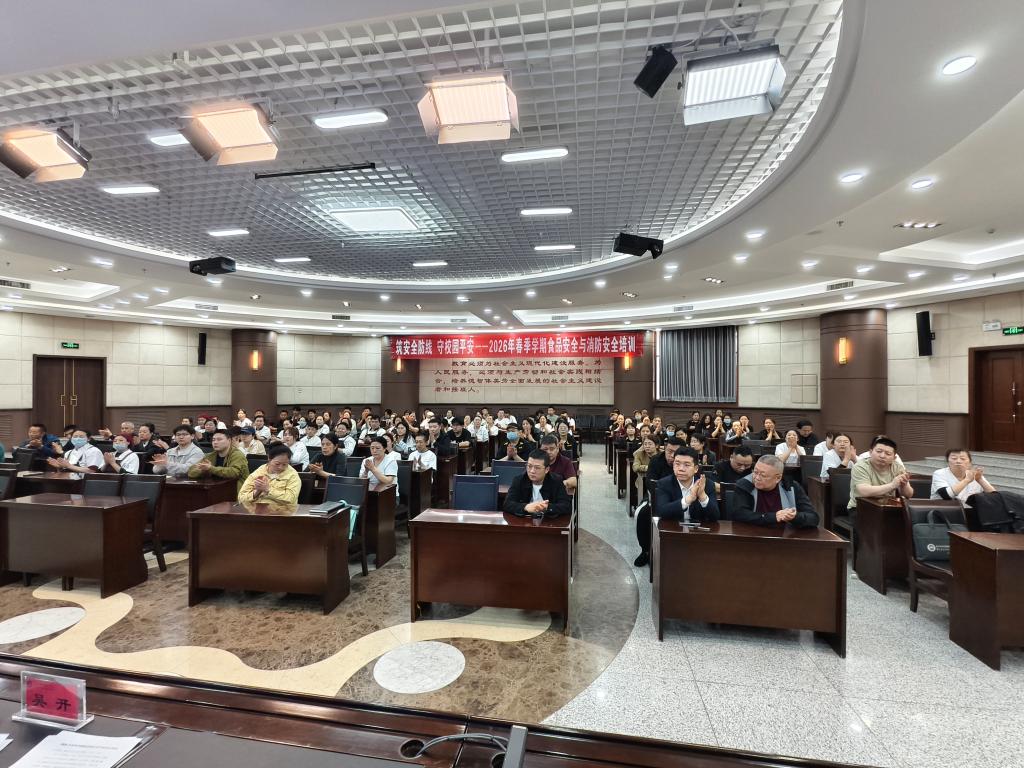 为进一步加强校园食品安全管理,提升食堂从业人员的安全意识和操作规范水平,切实保障广大师生饮食安全,我校于4月10日下午在图书馆会议厅举办了2026年春季学期校园食品安全专项培训。食堂全体从业人员共计100余人参加了此次培训。本次培训由后勤及运营管理处副处长吴开主持。