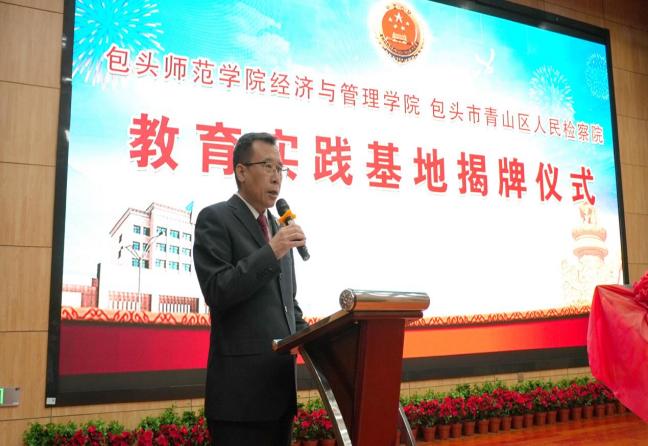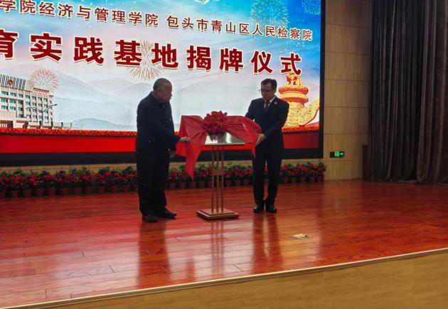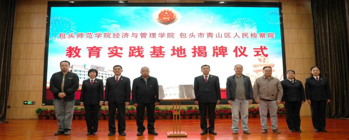 4月15日,包头师范学院经济与管理学院与青山区人民检察院举行教育实践基地揭牌仪式。青山区人民检察院党组书记、检察长田海波,党组成员、副检察长茹利平,党组成员、政治部主任白金莲,检委会专职委员田莉、王艳伟,第五检察部负责人杨慧云,办公室主任刘宇晨,经济与管理学院党总支书记张勇,院长李建忠,以及学院教师代表出席揭牌仪式。