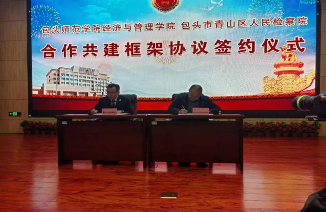 田海波在致辞中表示:青山区人民检察院在合作中将始终聚焦金融法治领域,依托精心打造的“金融安全教育防范基地”,把“青心护航”工作品牌经验、“预防、惩治、监督、服务、教研、共治”六位一体工作模式,深度融合嵌入合作,助力经济与管理学院科学设计优化实践教学体系、协同推进教育研究与高素质人才培养,促进金融理论与司法实践良性互动,推动成果转化与双向赋能,进一步深度打造具有辨识度的检校合作样板。张勇在致辞中表示:经济与管理学院在合作中,将始终坚持党建引领与业务融合同频共振,防范风险与护航发展联合互动,以铸牢中华民族共同体意识与服务地方经济社会发展实际行动,充分发挥学院金融人才培养和检察院法治保障功能,共同守护金融安全,全面落实内蒙古自治区“五大战略定位”和使命任务及包头市“1144”现代化产业体系建设要求。